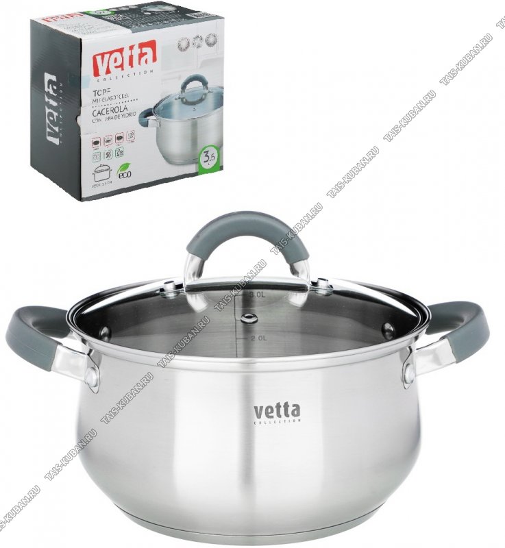 Vena Кастрюля 3,6л d20см,ф.груша,индукц.капсул.дно,ручки-дуги полые металл/силикон серый,стекл крыш рука-дуга полая металл/силикон серый,матов,п/у (12)