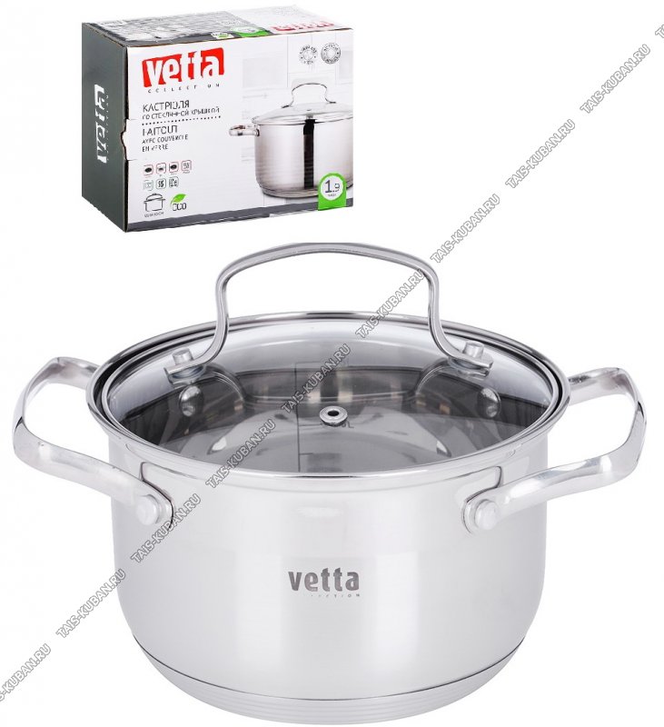 индукционное капсульное дно,ручки-скобы цельные металл,стеклянная крышка рука-скоба цельная металл,зеркальная/матовая полировка,подарочная упаковка,Vetta