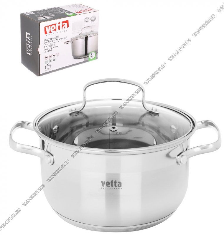 индукционное капсульное дно,ручки-скобы цельные металл,стеклянная крышка рука-скоба цельная металл,зеркальная/матовая полировка,подарочная упаковка,Vetta