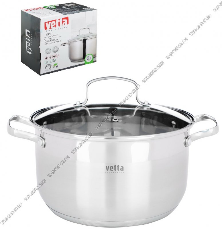 индукционное капсульное дно,ручки-скобы цельные металл,стеклянная крышка рука-скоба цельная металл,зеркальная/матовая полировка,подарочная упаковка,Vetta