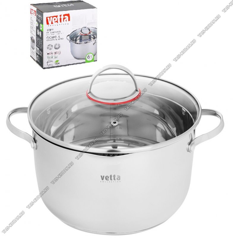 слив,индукцукционное капсульное дно,ручки-дуги цельные металлические,стеклянная крышка-дуршлаг 2-х сторонняя,ручка-дуга цельная металлическая,зеркальная полировка,подарочная упаковка,Vetta