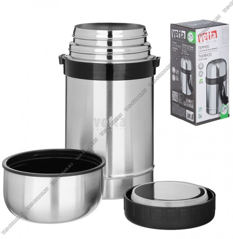 Термос (суповой) нерж 0,75л широк.горло,крыш-чашка,ручк-ремешок,п/у (12)