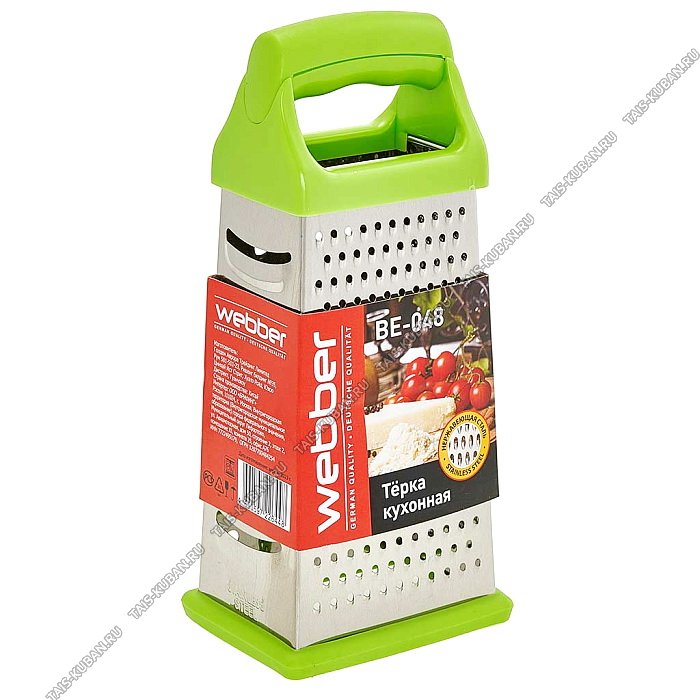 Терка 4-х гран h20см, нерж.сталь,прорезин.дно,пласт.зелен ручк (12)