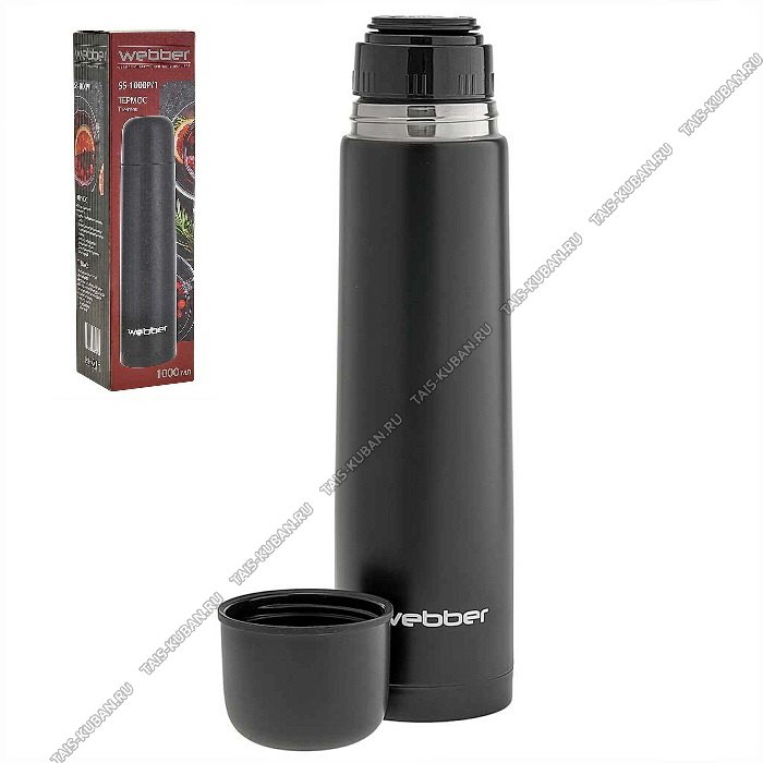 Термос "Webber" чёрн.матов 1,0л крышка-чашка,пробка с кноп,п/у (12)