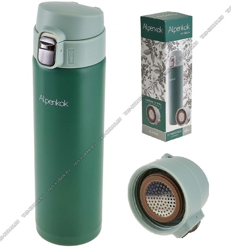 Термокружка (нержавеющая сталь) 0,48л "Alpenkok" с ситечком,зеленый (12)