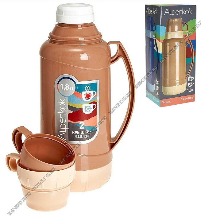 Термос "Alpenkok" 1,8л бежев,с ручкой,крышка-чашка 2шт,винт.пробка,п/у (12)