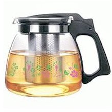 Чайник завар.декор (стекло) 1,5л "Цветы" нерж.фильтр,черн.пласт.ручк