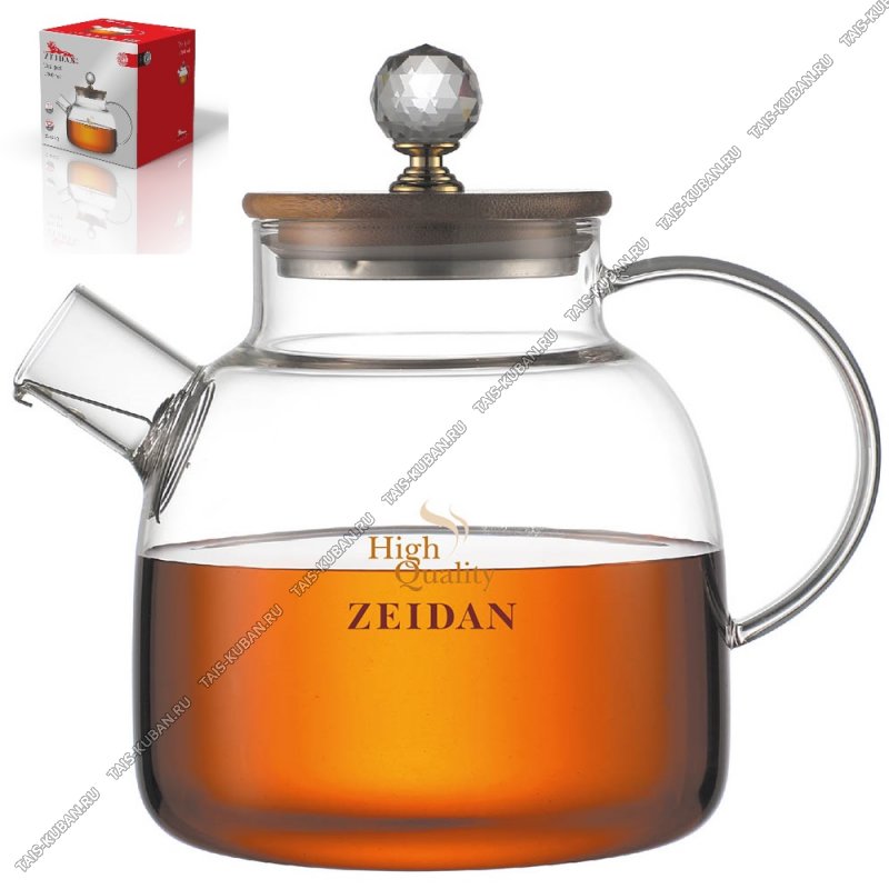 Чайник заварочный стекло 1,2л, нержавеющий фильтр-пружина, крышка бамбук с ручкой "кристалл",подарочная упаковка (18)
