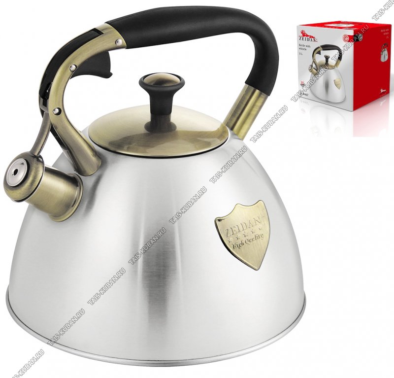 Чайник нерж 3,0л свист,индукц.капсул.дно,ручка металл бронза/бакел.черн.с кнопк.д/открыван,матов,п/у (6)