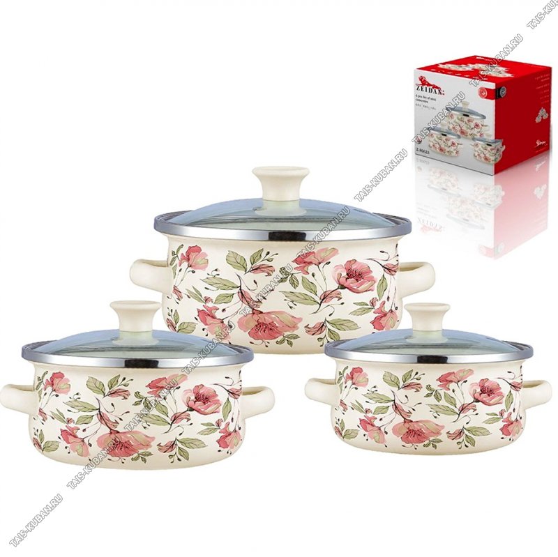 Набор мини-кастрюль 3шт "Розовый шиповник" (12)