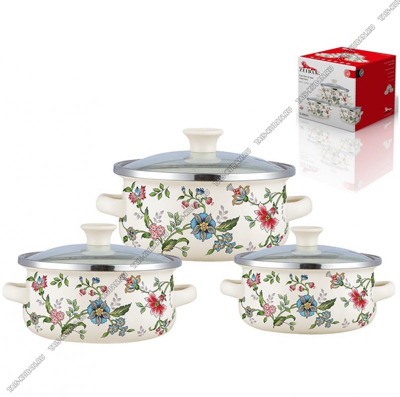 Набор мини-кастрюль 3шт "Цветочный микс" (12)