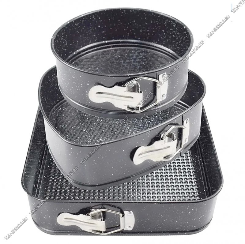 Форма разъёмн, Н-р 3шт ("сердце" 24х23 h7см,кругл d18 h7см,квадрт 26х26 h7см) черн/бел."гранит" (12)