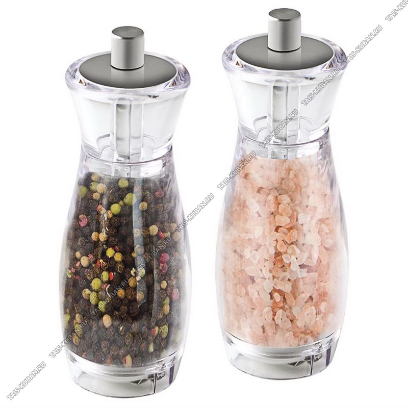 Мельница 2 в 1 для перца и соли набор 2шт 13,6х5см,керамический механизм измелчения, нержавеющая сталь+акрил,подарочная упаковка (12)