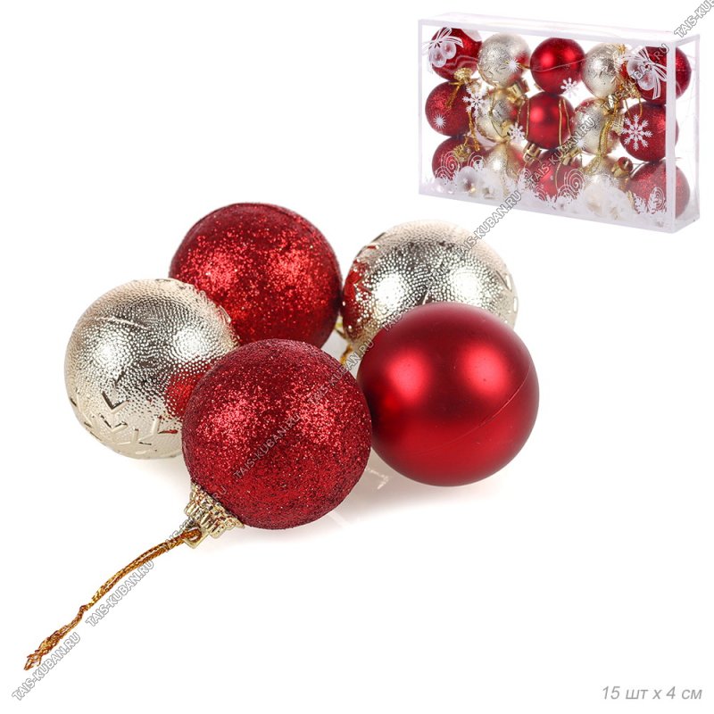 Ёлочный шар н-р 15шт d4см, красные Ёлочный шар н-р 15шт d4см, красные "Ассорти" пластик п/у (180)