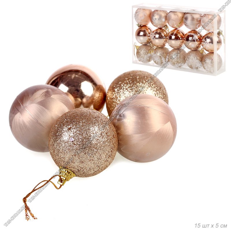 Ёлочный шар н-р 15шт d5см, бронза "Ассорти" пластик п/у (96)