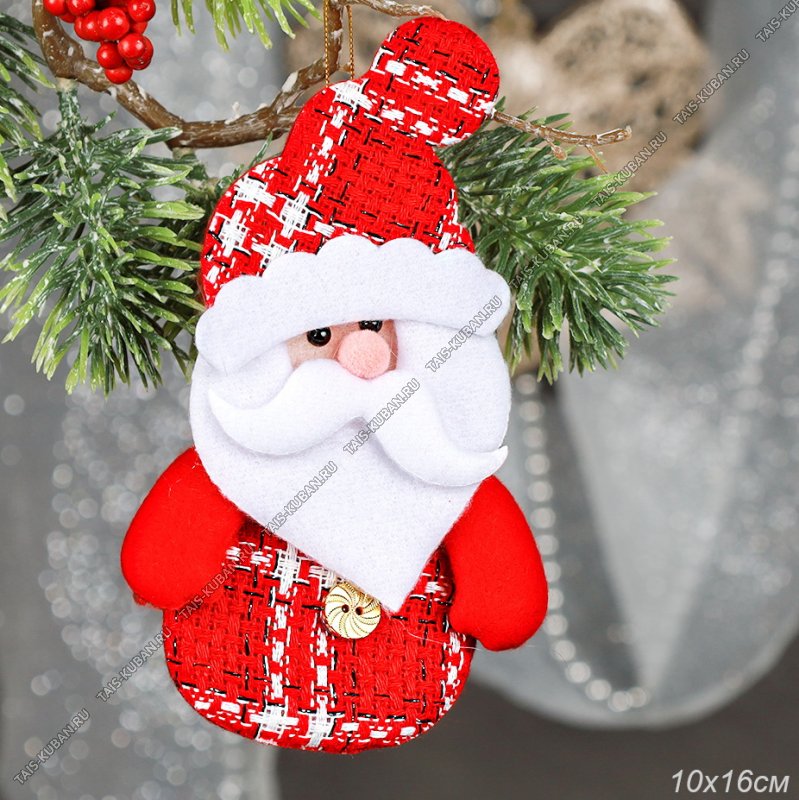 Ёлочный игрушка-подвеска (текстиль) 10х18см Ёлочный игрушка-подвеска (текстиль) 10х18см "Дед Мороз", с тесьмой, микс (200)