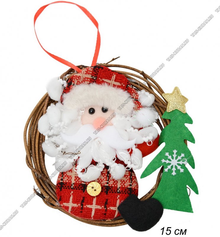 Ёлочная игрушка-подвеска (текстиль) d15см "Дед Мороз", с тесьмой, микс (150)