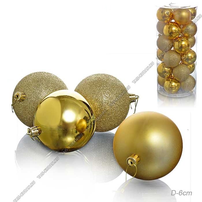Ёлочный шар н-р 20шт d6см, золото Ёлочный шар н-р 20шт d6см, золото "Ассорти" пластик п/у (30)
