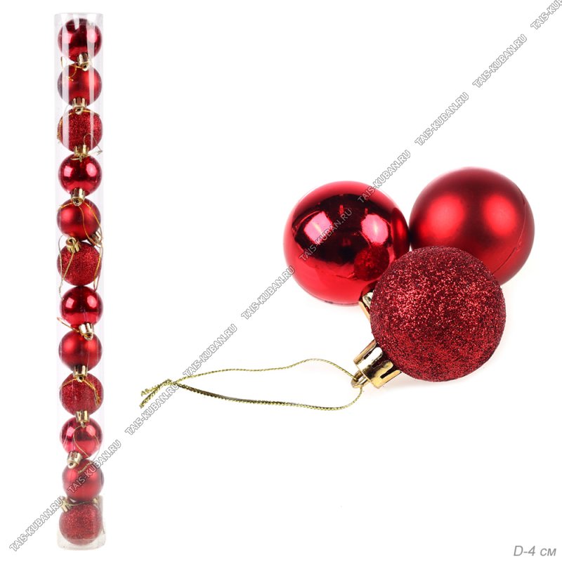 Ёлочный шар н-р 12шт d4см красный "Ассорти" пластик п/у (192)