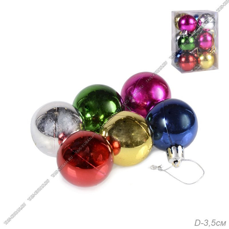 Ёлочный шар н-р 12шт d4см Ёлочный шар н-р 12шт d4см "Ассорти микс" пластик п/у (192)
