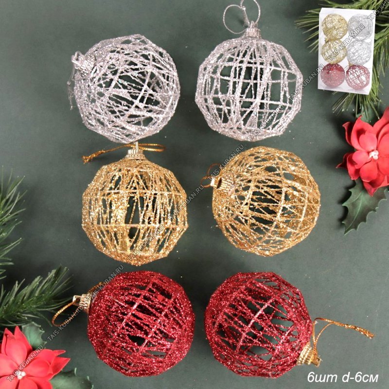 Ёлочный шар н-р 6шт d8см, золото Ёлочный шар н-р 6шт d8см, золото "Ассорти" пластик п/у (64)