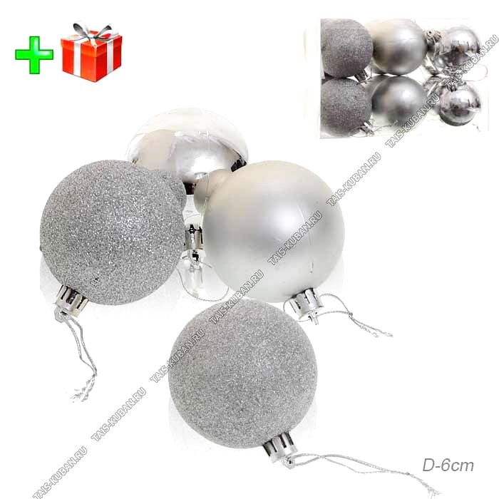 Ёлочный шар набор 12шт d6см, серебро "Ассорти" (60)