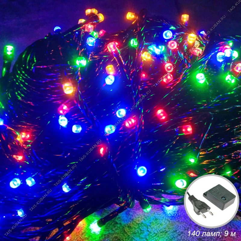 140 разноцветных LEDламп, 8 режимов, зеленый провод 220V