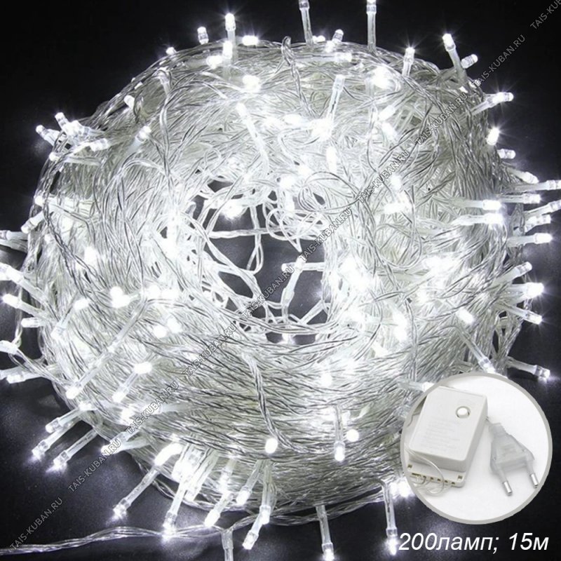 Электрогирлянда "НИТЬ/Горошины" L15м, 200 холодных LEDламп