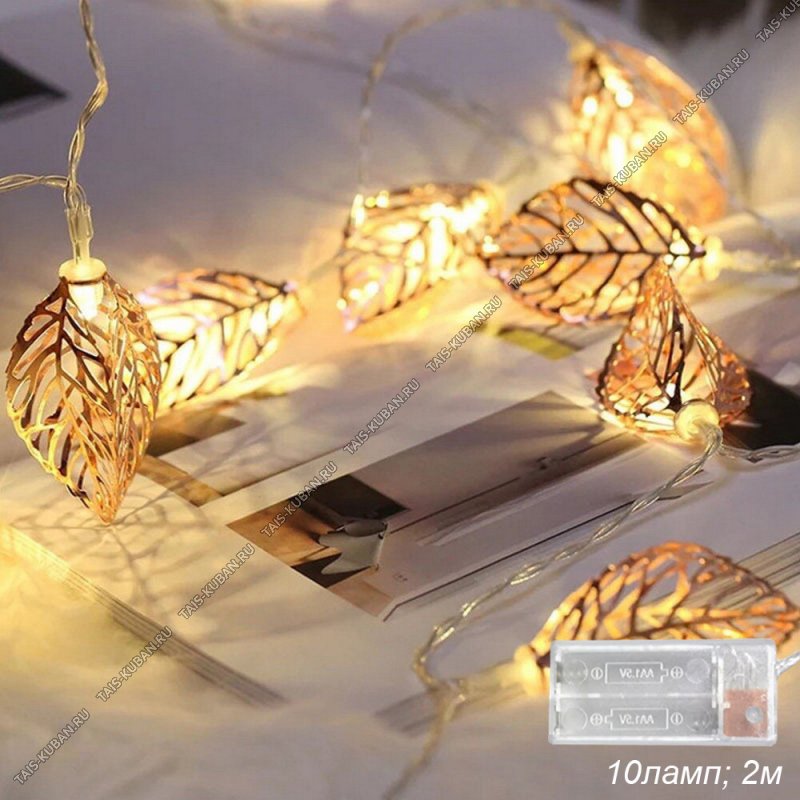 Электрогирлянда "Нить/Листочки" L2м, 10тепл.LEDламп, прозрач.провод,,2*АА (100)