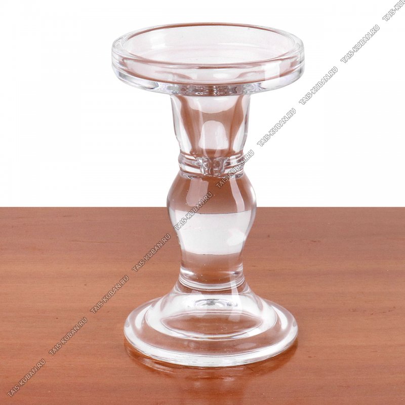 Подсвечник (стекло) на 1свечу h14cм d8,5см "Мальва" на ножке б/уп