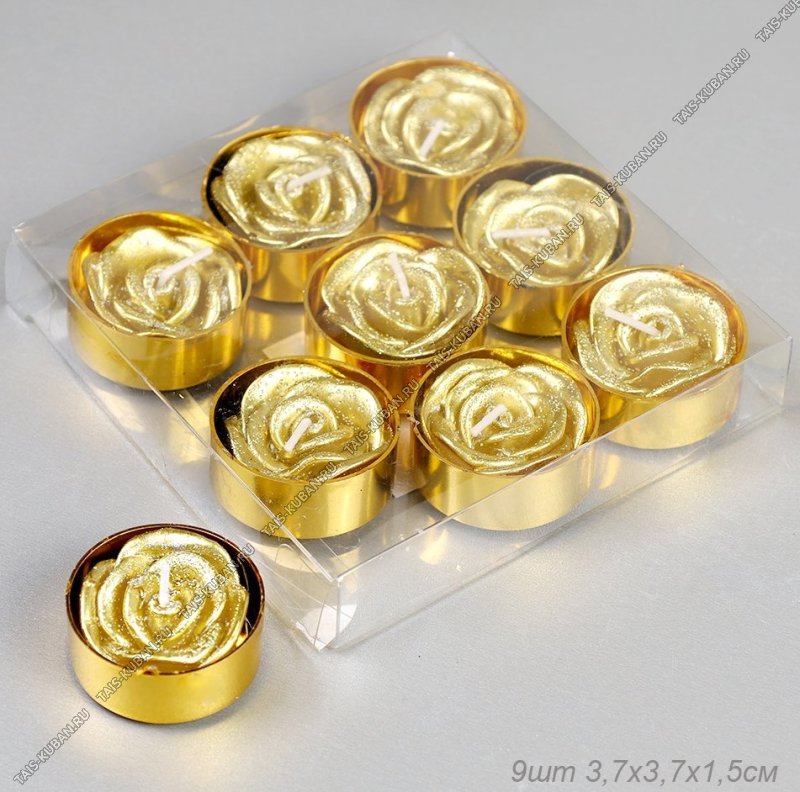 Свеча (парафин) чайная н-р 9шт "Роза золото"