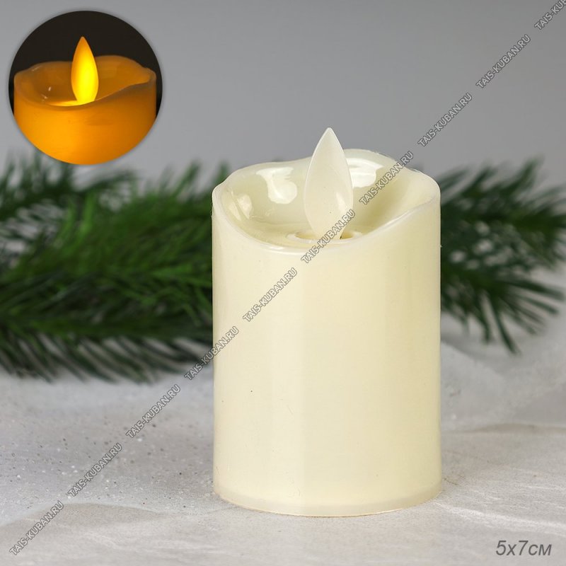 Свеча светодиод (пластик) "Подвижный фитиль" h7 d5см, бежевая, б/уп (12)