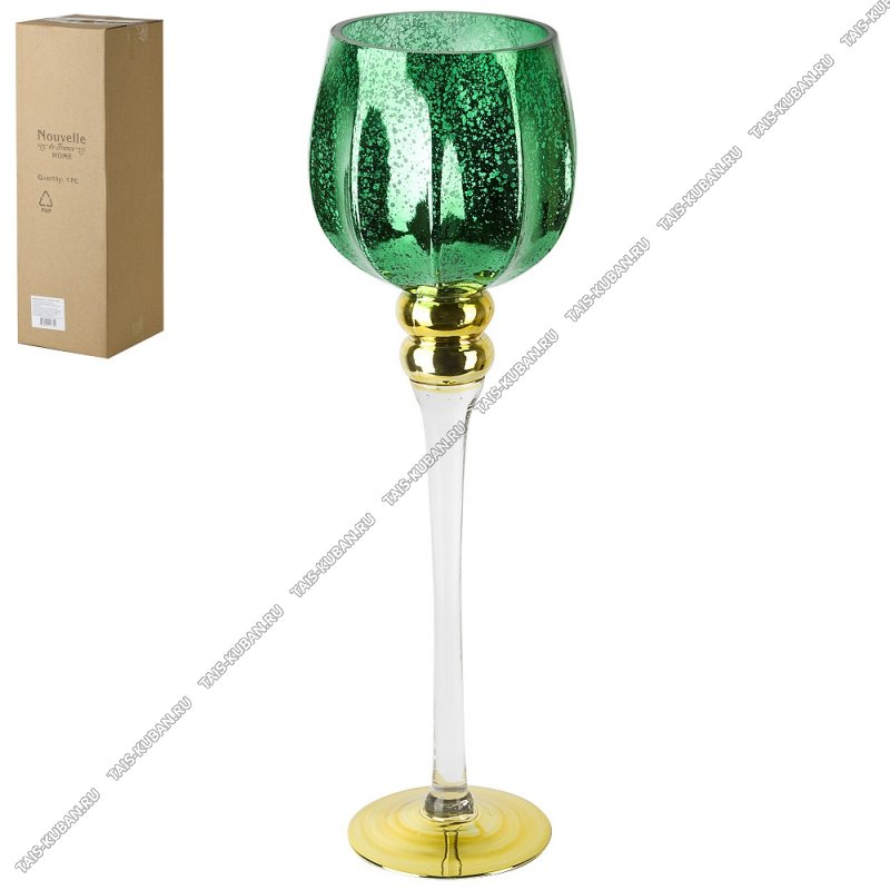 Подсвечник-бокал (стекло) на высок.ножке h40см Подсвечник-бокал (стекло) на высок.ножке h40см "Massimo/Зеленый-золото" (чаша d10,5 h11см)