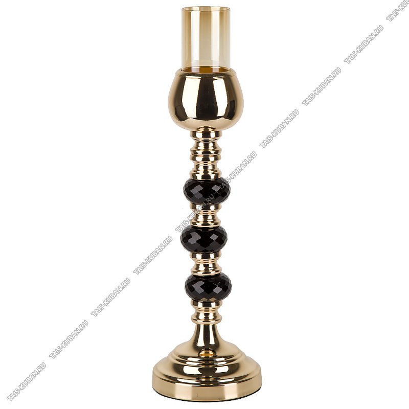 Подсвечник (металл+стекло) "Капля" на высокой ножке h39см