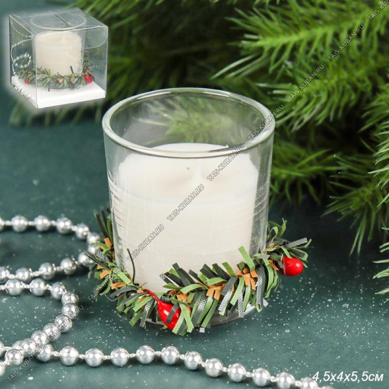 Свеча (парафин) в стеклянном подсвечнике "Новогодняя" h5см d4,5см