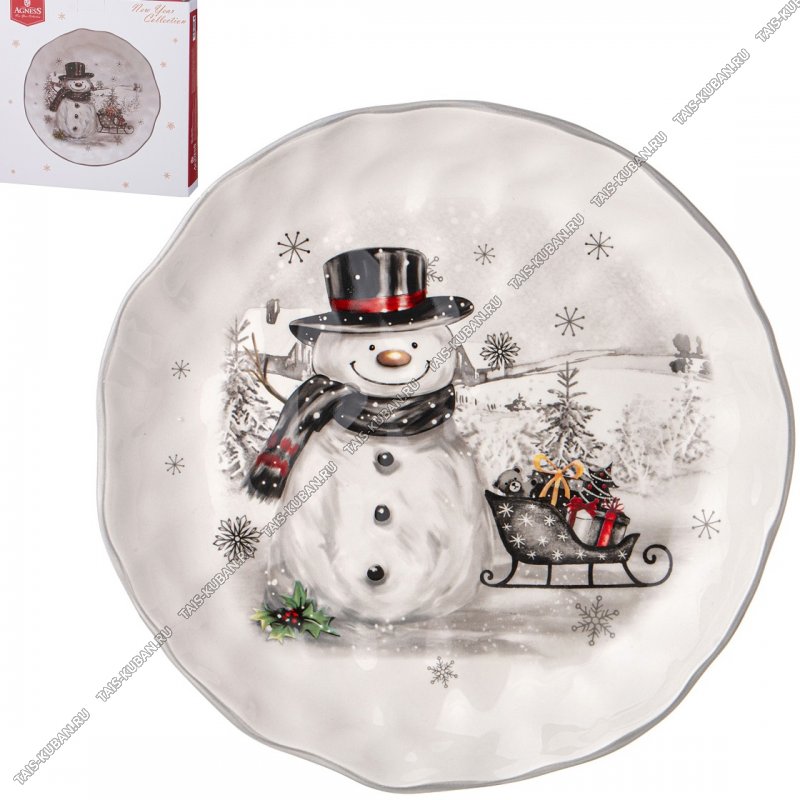 С Новым Годом/Снеговик Тарелка плоская d23см (24)