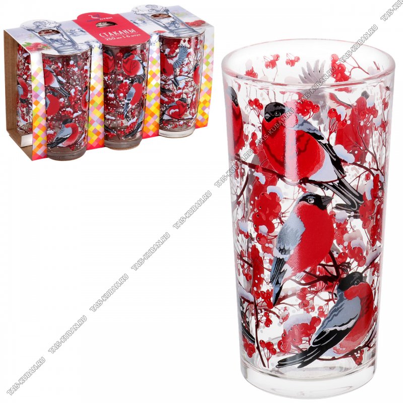 Снегири на рябине Стакан набор 6шт 250мл (4) Снегири на рябине Стакан набор 6шт 250мл (4)