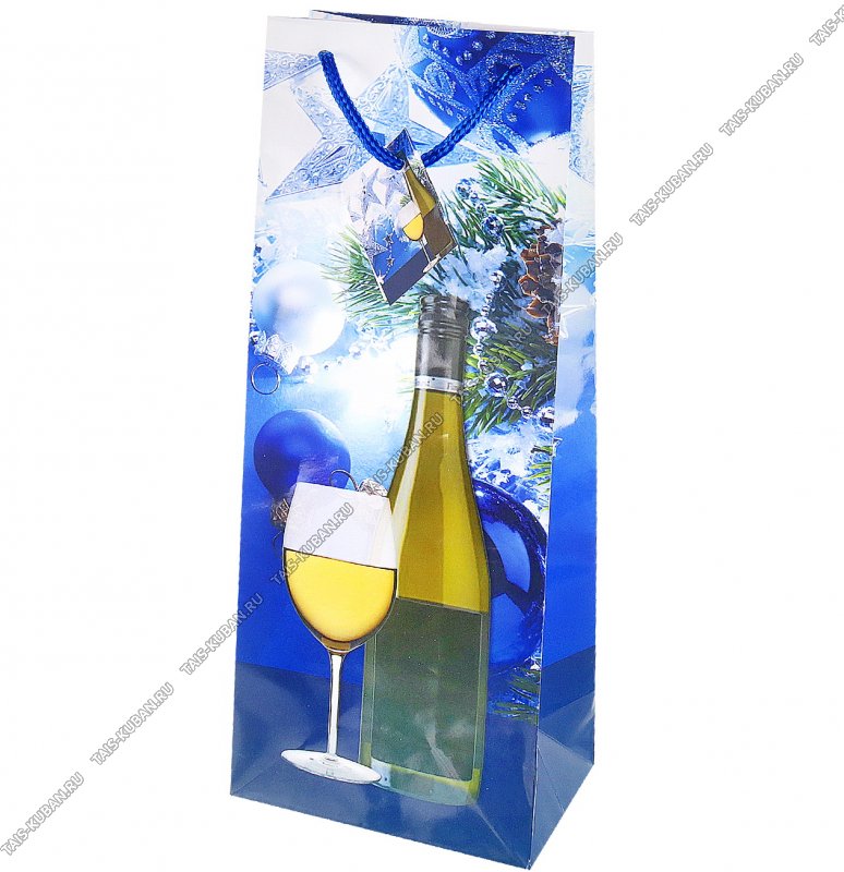 Пакет бумажный д/бутылки (13х36см) "Белое вино и ель" (12)