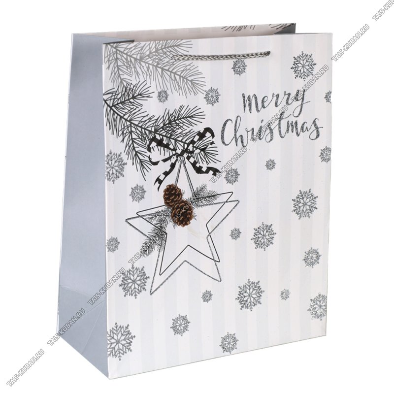Пакет бумажный (h32х26см) Пакет бумажный (h32х26см) "Серебристый Новый Год" (12)