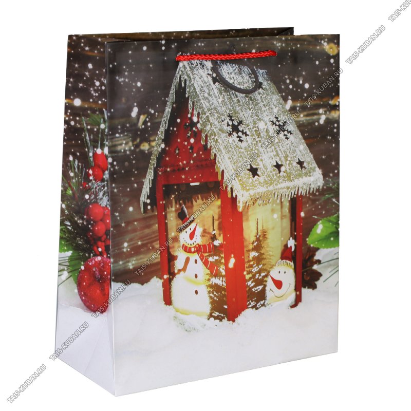 Пакет бумажный (h32х26см, дно12см) "С Новым Годом/Фонарик со снеговиками" (12/384)
