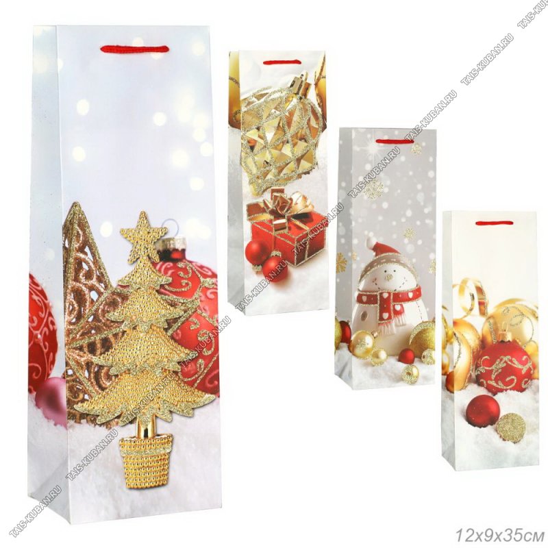 Пакет бумажный для бутылки (h35х12см) Пакет бумажный для бутылки (h35х12см) "Белое вино и ель" (12)