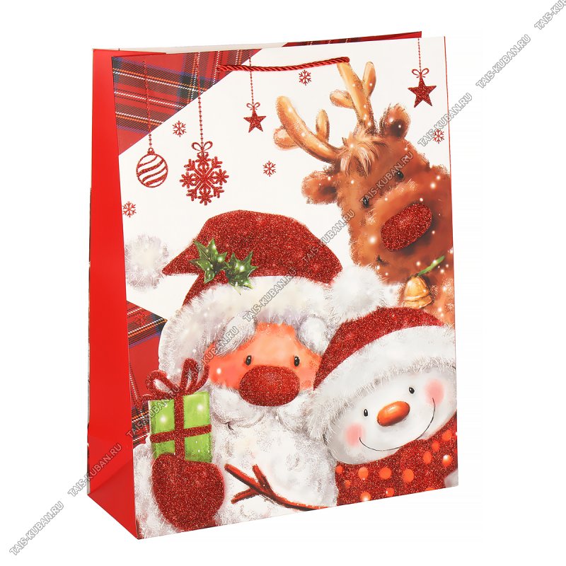 Пакет бумажный (h40х31см, дно12см) Пакет бумажный (h40х31см, дно12см) "Дед Мороз и друзья" с блестками (12)