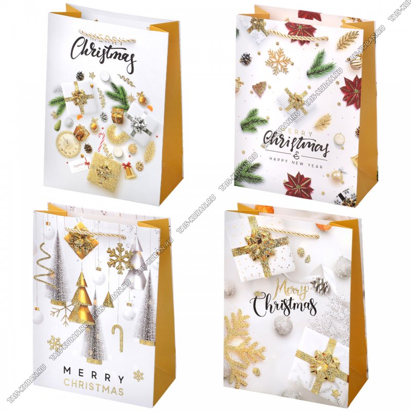 Пакет бумажный (h24х18см) "Золотой Новый год" с блестками (12)