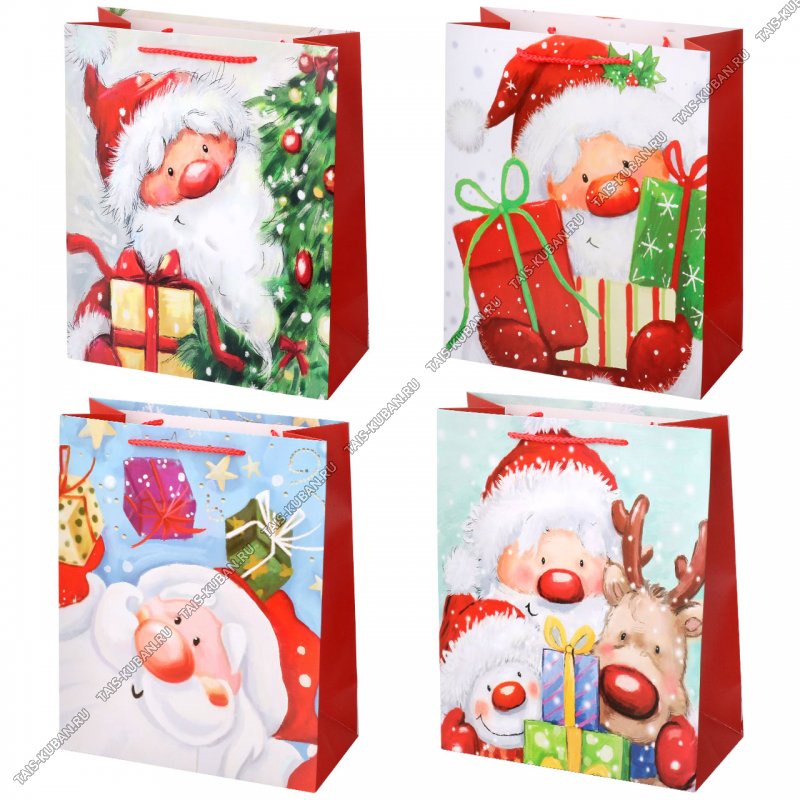 Пакет бумажный (h32х26см, дно9см) Пакет бумажный (h32х26см, дно9см) "Веселый Дед Мороз" красный (12)
