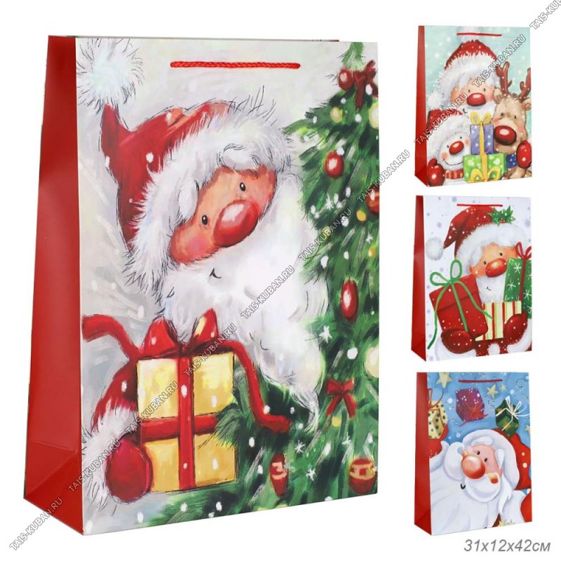 Пакет бумажный (h32х26см, дно9см) Пакет бумажный (h32х26см, дно9см) "Веселый Дед Мороз" красный (12)