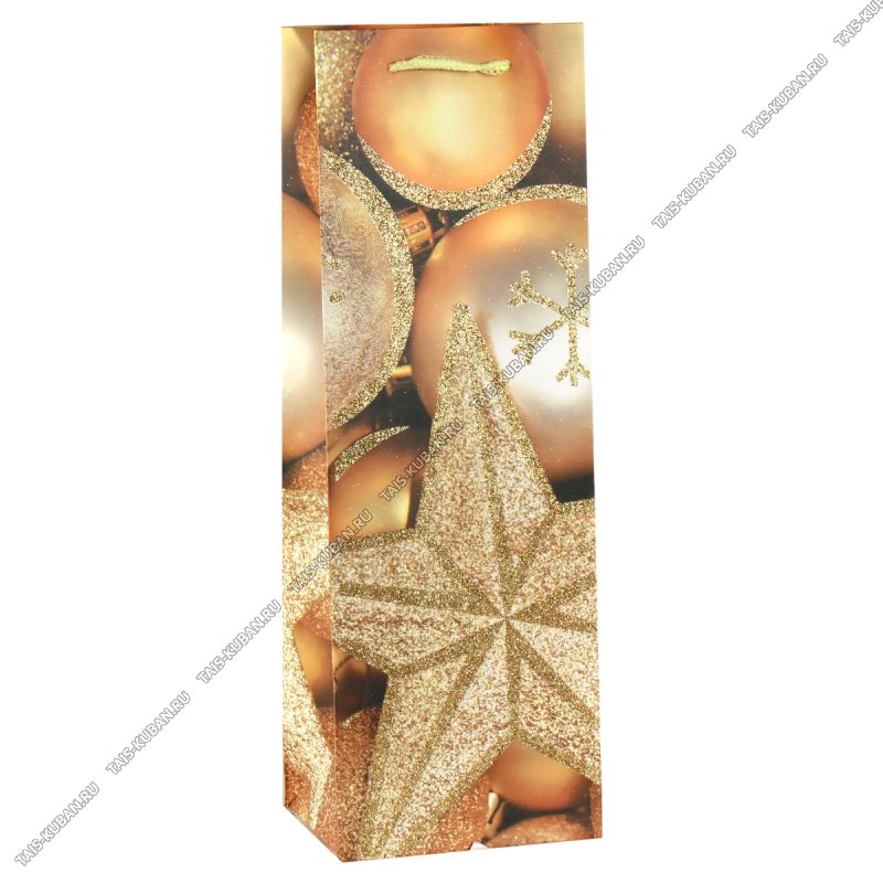 Пакет бумажный п/бутылку (h35х12см) "Золотой Новый Год/Звезда" с блестками (12)