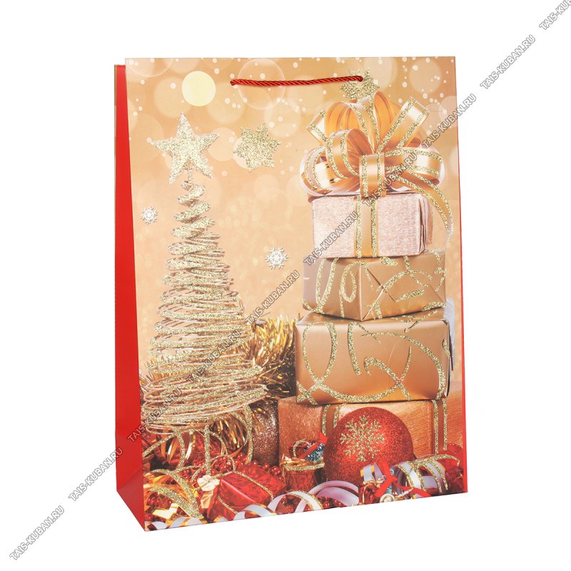 Пакет бумажный (h40х31см, дно12см) "Новый год/Подарки золотые" (12)