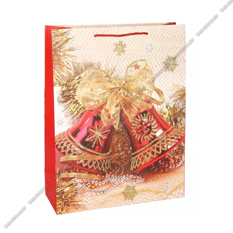 Пакет бумажный (h40х31см, дно12см) "Новый год/Красные колокольчики" (12)