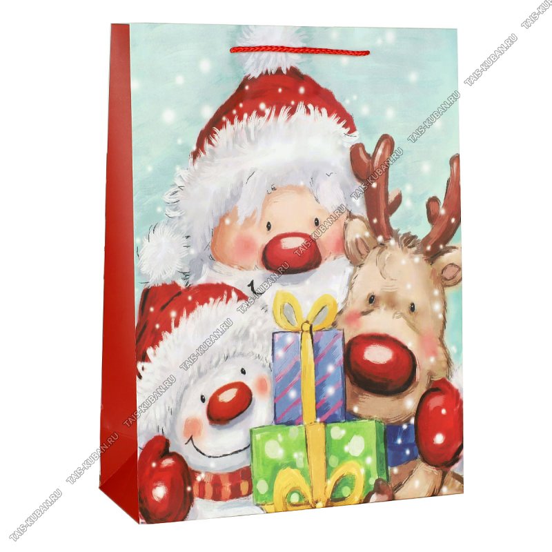 Пакет бумажный (h42х31см, дно12см) "Дед Мороз и друзья/Олень и снеговик" (12)