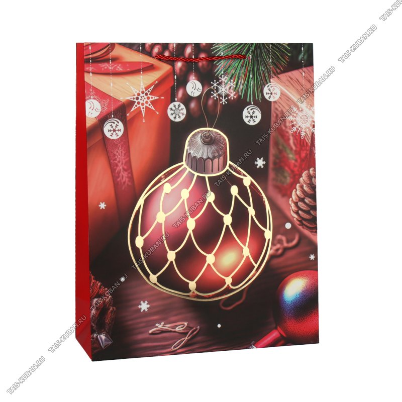 Пакет бумажный (h40х31см, дно12см) "Феерия шаров/Алый шар" (12)